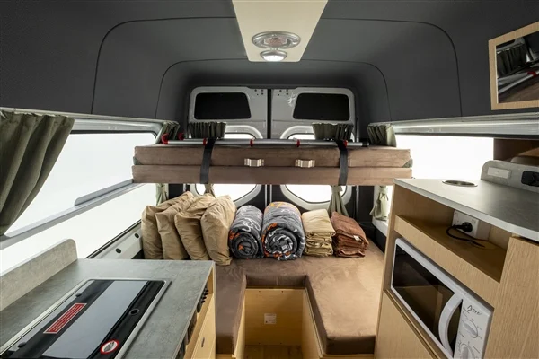 Economical family touring is the purpose of the custom-built Endeavour Camper. Light, economical and easy to handle, this is the ultimate in no-fuss for family road trips. This vehicle is great for families with 2 adults and 2 children that need a 4 berth but are willing to forgo the onboard shower and toilet that are available in larger 4 berth motorhomes.