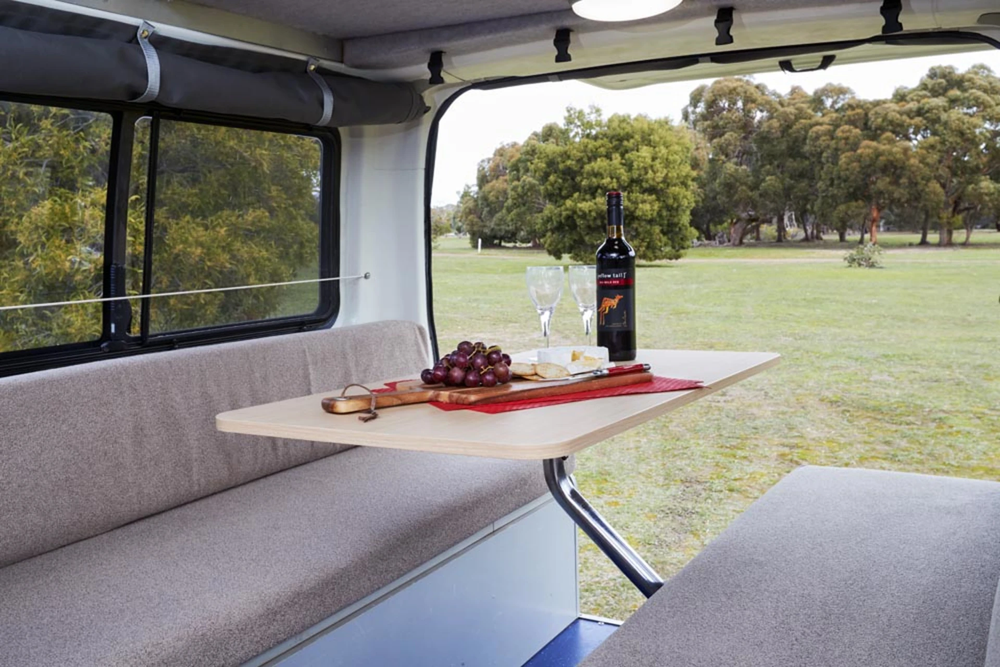 The HiTop campervan is a well equipped vehicle with everything you need for an economical holiday. We provide a fold out table with camping chairs, linen and all living equipment. The HiTop has a 50 litre water tank and 70 litre fuel tank. With fuel consumption of 14L/100kms the HiTop makes for an economical Australian holiday!
