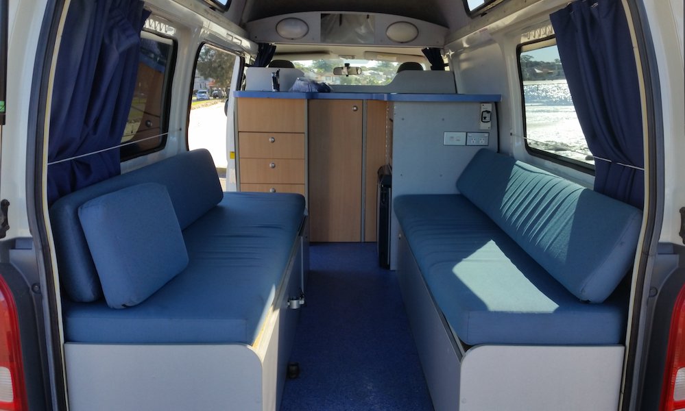 The HiTop campervan is a well equipped vehicle with everything you need for an economical holiday. We provide a fold out table with camping chairs, linen and all living equipment. The HiTop has a 50 litre water tank and 70 litre fuel tank. With fuel consumption of 11L/100kms the HiTop makes for an economical Australian holiday.