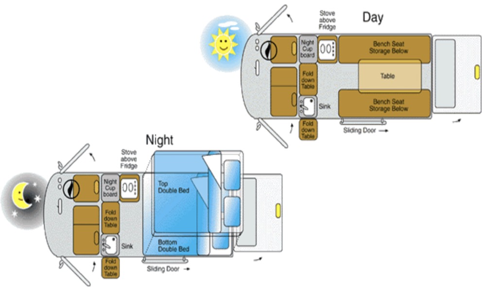| 1 Roof bed Bed | 1.95m x 1.30m |