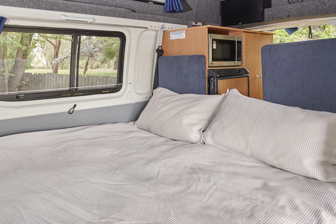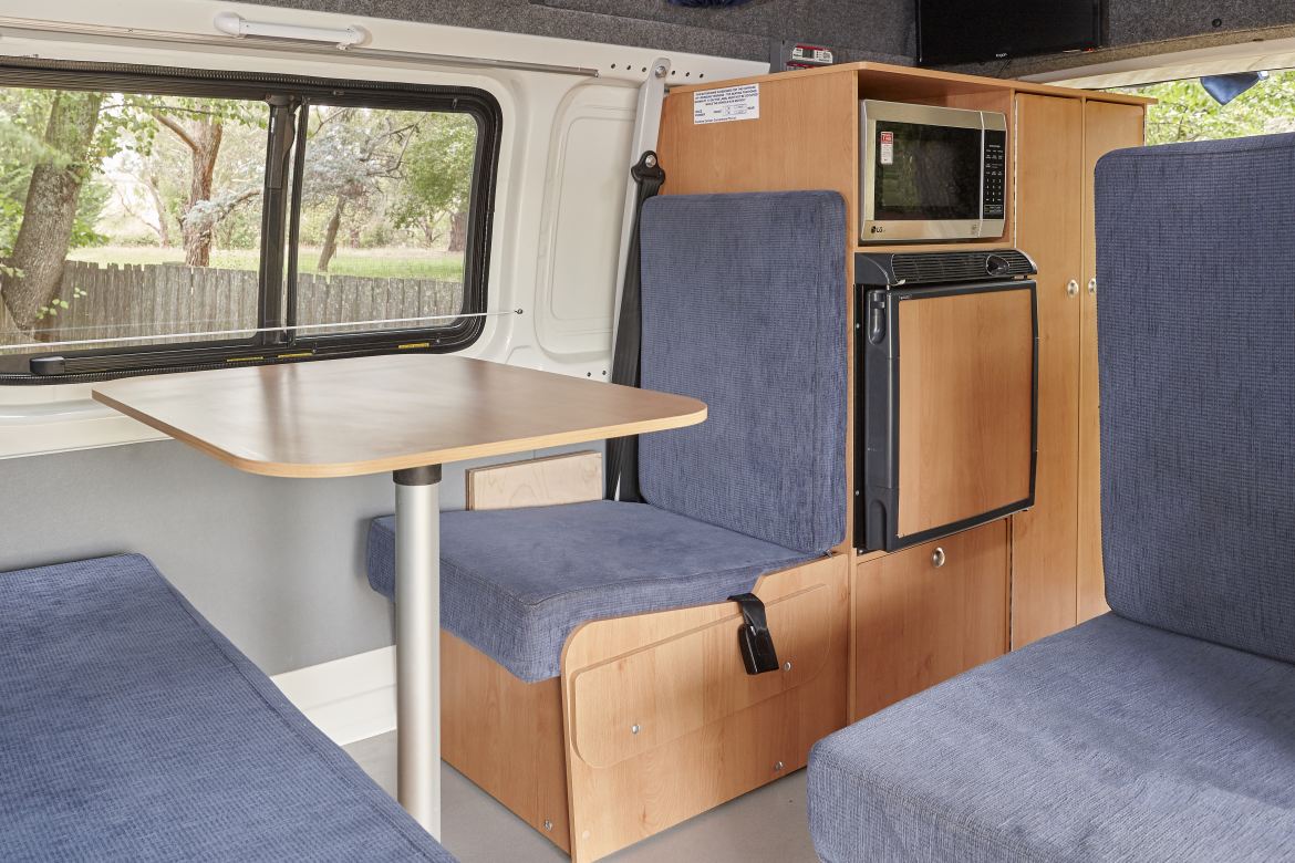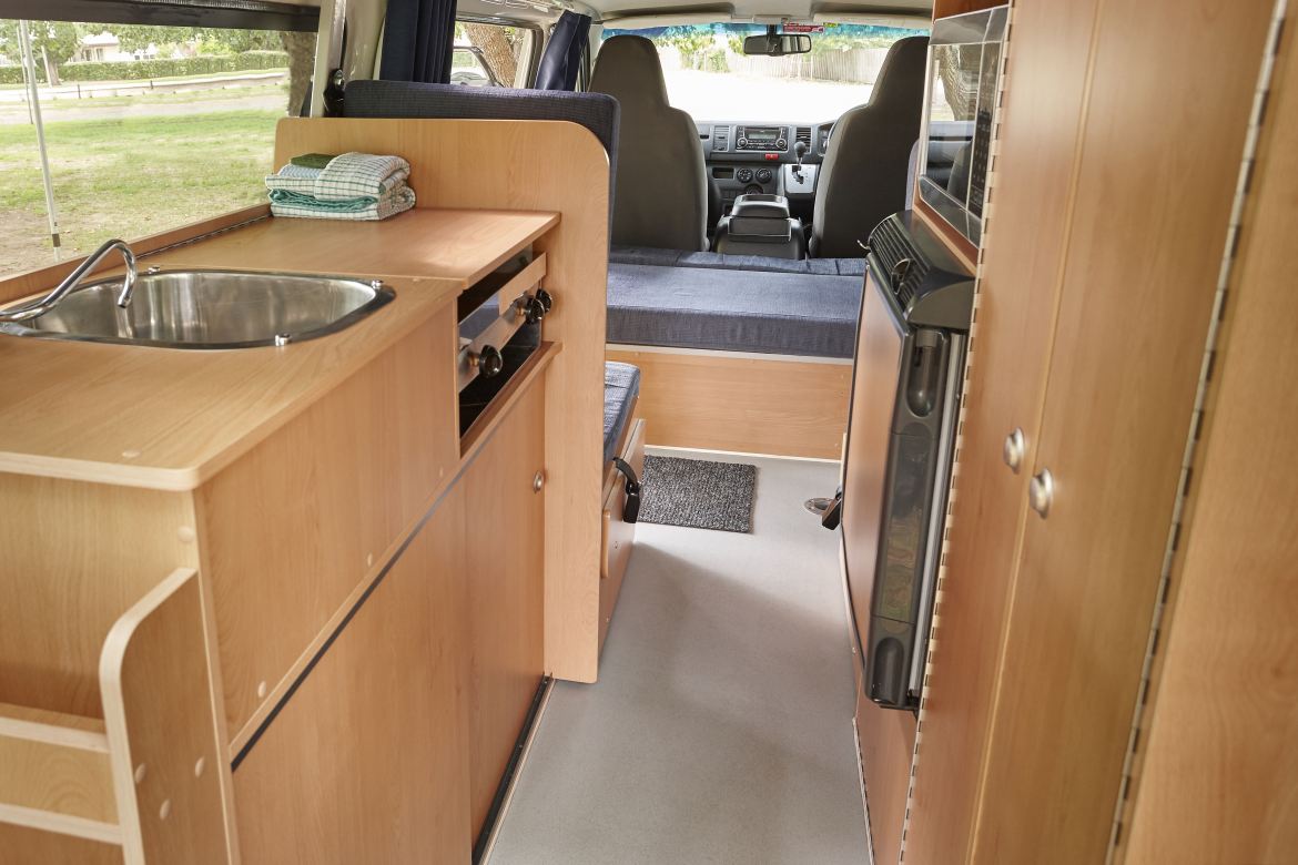 This “Hi-Top” campervan has been converted to our own specifications, with a view to providing the very best in equipment, fittings and workmanship. Why not consider hiring a Mountain Bike with this vehicle; price and details on the booking page. An external awning may also be hired for $7 per day (max $50). Please note only 1 child restraint can be fitted to this vehicle.