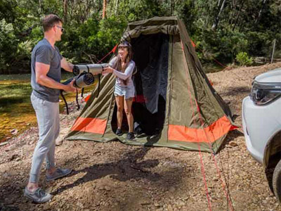 The Outback 4WD will take you past the end of the sealed road and get you off the tourist track to find your own piece of paradise. Based on the Toyota Hilux with automatic transmission, it combines 4WD capability with a comfortable automatic driving experience, perfect for longer trips. Ideal for a family or group of up to five, you’ll be camping in our tough-as-nails, easy to set-up and 100% sealed Darche tents. With the free-standing tents you can leave the camp set up if you’re exploring national parks for multiple days.