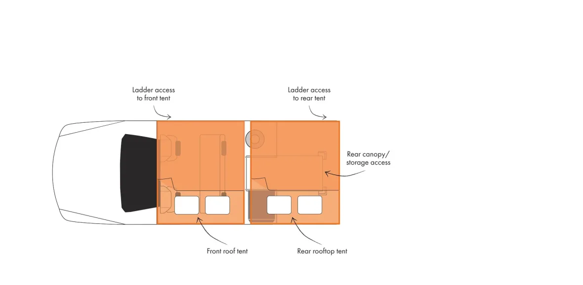Dual Tents, Double the Fun: The Warrior has two tents that sleep up to 4 adults. There’s a rooftop tent, and the rear fold-out tent provides a comfy second bed.