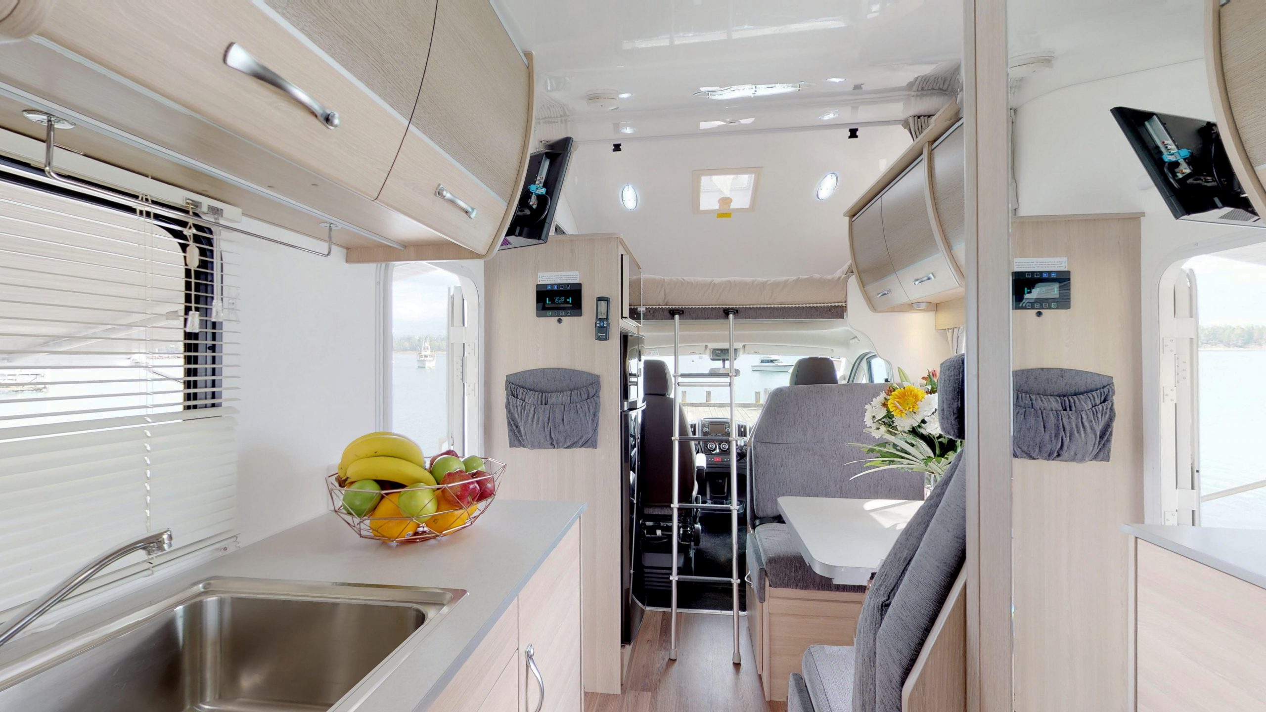 The Royale is a Deluxe 6 berth Motorhome with a top of the range features and impeccable style. Featuring a slide out Queen sized bed, a two door fridge/freezer, awning, reverse camera, ample storage and solar panel, this vehicle is sure to have everything you need and much more for your luxury holiday.