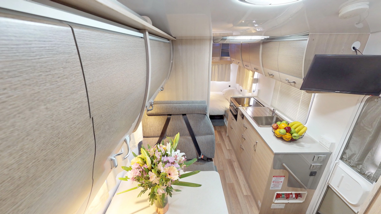 Relax and unwind in this flexible space, with 2 dinettes and a TV for all your entertainment needs. The Cruisin’ 4 Berth Adventurer offers not one but 2 double beds, including a cosy overhead bed and another located in the rear convertible dinette, ensuring ample space for the whole family.