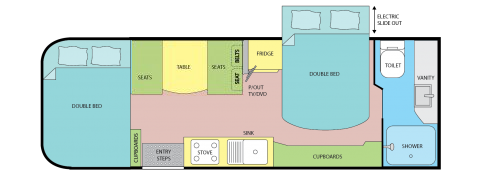 When life on the road calls for the very best in creature comforts. The Jayco Conquest Royale is the way to go, with premium features including a slide-out island, queen-size bed and spacious ensuite.