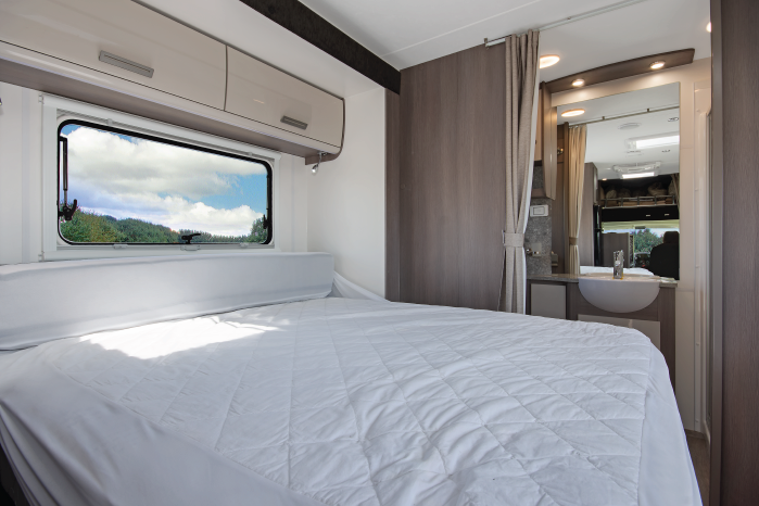 | 1 x Double Bed (Overhead) 1 x Double bed (Dinette) 1 x Queen slide out (Rear) | 2.00m x 1.3m 1.83m x 1.0m 2.25m x 1.35m |